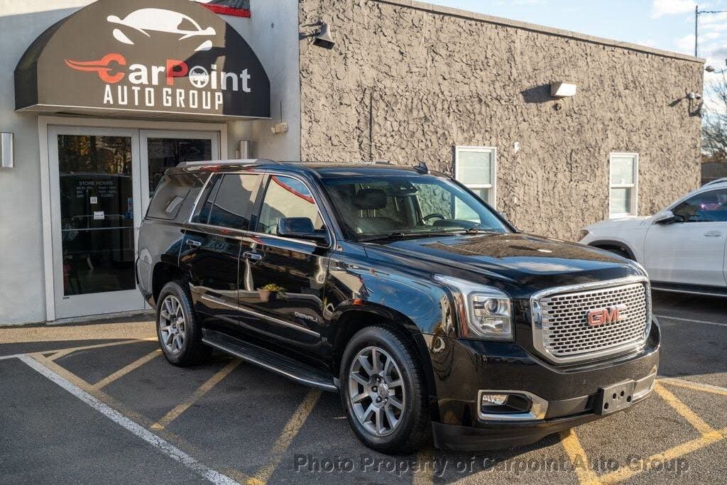 KEY FEATURES AND OPTIONS Comes equipped with: Air Conditioning, Rear Air Conditioning, MP3, Bluetooth, Navigation System, Rear Heated Seats . This GMC Yukon also includes Power Driver's Seat, Climate Control, Power Passenger Seat, Privacy Glass/Tinted Windows, Power Steering, Roof Rack, Power Windows, Steering Radio Controls, Power Mirrors, Leather Steering Wheel, Driver Airbag, ABS Brakes, Fog Lights, Passenger Airbag, Intermittent Wipers, Side Airbags, Rear Defogger, Security System, AM/FM, CD Player, Surround Sound, Touch Screen, Satellite Radio, Running Boards, 3rd Row Seating, Cup Holders, Remote Trunk Lid, Heated Mirrors, Daytime Running Lights, Parking Sensors, Reverse Camera, Side Curtain Airbags, Power Lift Gate, Tire Pressure Monitor, Premium Sound, Carpeted Floor Mats, Aux. Audio Input, HID Headlamps, HD Radio, Voice Control. Air Conditioning, Climate Control, Tinted Windows, Power Steering, Power Windows, Power Mirrors, Leather Steering Wheel, Power Drivers Seat, Power Passenger Seat, Roof Rack, Rear Air Conditioning, Steering Wheel Radio Controls, Driver Airbag, Passenger Airbag, Side Airbags, Security System, ABS Brakes, Rear Defogger, Fog Lights, Intermittent Wipers, AM/FM, CD Player, 3rd Row Seating, Aux. Audio Input, Bluetooth, Carpeted Floor Mats, Cup Holders, Daytime Running Lights, Heated Mirrors, HID Headlamps, Navigation System, Parking Sensors, Power Lift Gate, Premium Sound, Rear Heated Seats , Remote Trunk Lid, Reverse Camera, Running Boards, Side Curtain Airbags, Tire Pressure Monitor - Contact AL jamal at 732-254-2020 or Ajamal@carpointautogroup.com for more information. -[!@@Additional Info@@!]Air Conditioning, Climate Control, Tinted Windows, Power Steering, Power Windows, Power Mirrors, Leather Steering Wheel, Power Drivers Seat, Power Passenger Seat, Roof Rack, Rear Air Conditioning, Steering Wheel Radio Controls, Driver Airbag, Passenger Airbag, Side Airbags, Security System, ABS Brakes, Rear Defogger, Fog Lights, Intermittent Wipers, AM/FM, CD Player, 3rd Row Seating, Aux. Audio Input, Bluetooth, Carpeted Floor Mats, Cup Holders, Daytime Running Lights, Heated Mirrors, HID Headlamps, Navigation System, Parking Sensors, Power Lift Gate, Premium Sound, Rear Heated Seats , Remote Trunk Lid, Reverse Camera, Running Boards, Side Curtain Airbags, Tire Pressure Monitor