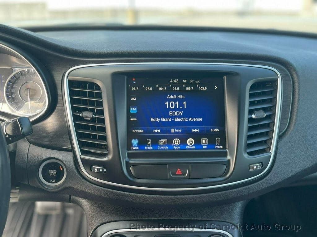 LOADED WITH VALUE! Comes equipped with: MP3, Bluetooth. This Chrysler 200 also includes Clock, Tachometer, Cruise Control, Power Steering, Telescoping Steering Wheel, Steering Radio Controls, Power Mirrors, Driver Airbag, Passenger Airbag, Intermittent Wipers, Side Airbags, Rear Defogger, Security System, AM/FM, Touch Screen, Center Arm Rest, Vanity Mirrors, Child Proof Door Locks, Reverse Camera, Side Curtain Airbags, Roll Stability Control, Tire Pressure Monitor, Premium Sound, Carpeted Floor Mats, Overhead Console, Aux. Audio Input, HD Radio, Voice Control. Cruise Control, Power Steering, Power Mirrors, Clock, Tachometer, Telescoping Steering Wheel, Steering Wheel Radio Controls, Driver Airbag, Passenger Airbag, Side Airbags, Security System, Rear Defogger, Intermittent Wipers, AM/FM, Premium Sound System, Full Leather Interior Surface, Aux. Audio Input, Bluetooth, Carpeted Floor Mats, Center Arm Rest, Child Proof Door Locks, Overhead Console, Premium Sound, Reverse Camera, Roll Stability Control, Side Curtain Airbags, Tire Pressure Monitor, Vanity Mirrors - Contact Sales Department at 732-254-2020 or sales@carpointautogroup.com for more information. -[!@@Additional Info@@!]Cruise Control, Power Steering, Power Mirrors, Clock, Tachometer, Telescoping Steering Wheel, Steering Wheel Radio Controls, Driver Airbag, Passenger Airbag, Side Airbags, Security System, Rear Defogger, Intermittent Wipers, AM/FM, Premium Sound System, Full Leather Interior Surface, Aux. Audio Input, Bluetooth, Carpeted Floor Mats, Center Arm Rest, Child Proof Door Locks, Overhead Console, Premium Sound, Reverse Camera, Roll Stability Control, Side Curtain Airbags, Tire Pressure Monitor, Vanity Mirrors
