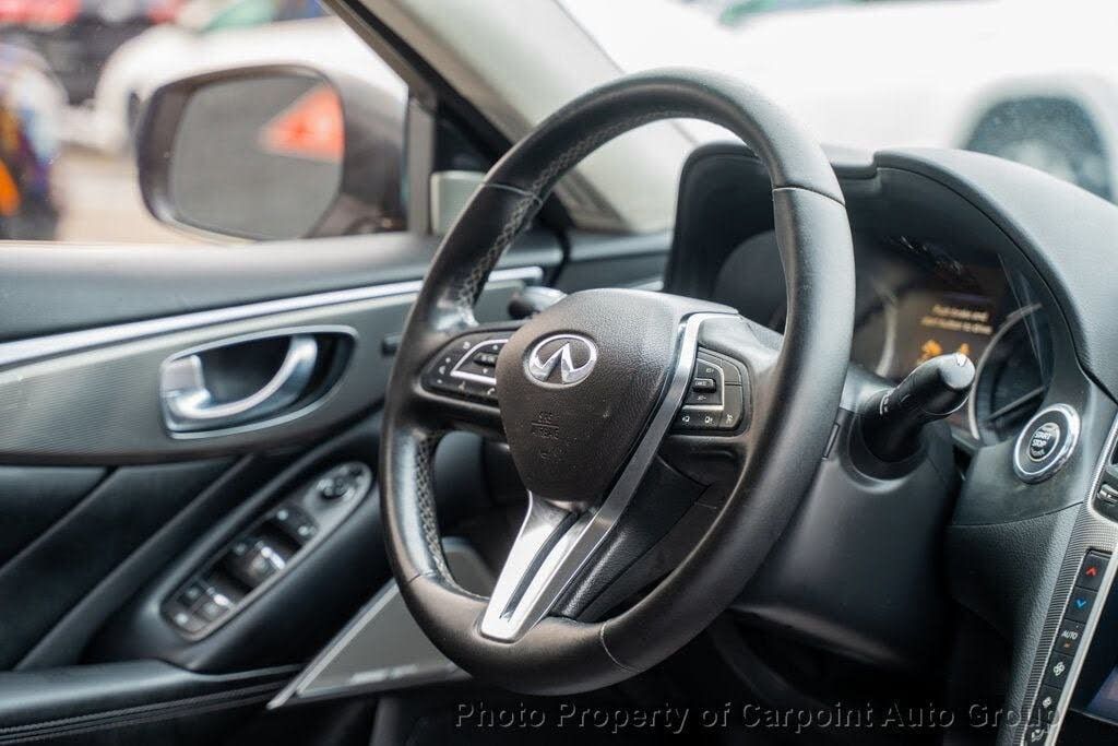 WARRANTY A Limited Warranty is included with this vehicle. Contact seller for more information. KEY FEATURES AND OPTIONS Comes equipped with: Air Conditioning, Sunroof, Bluetooth. This INFINITI Q50 also includes Power Driver's Seat, Clock, Climate Control, Power Passenger Seat, Tachometer, Multi-Zone Climate Control, Memory Seat Position, Cruise Control, Homelink System, Power Steering, Telescoping Steering Wheel, Steering Radio Controls, Power Mirrors, Moonroof, Leather Steering Wheel, Driver Airbag, Fog Lights, Passenger Airbag, Intermittent Wipers, Side Airbags, Rear Defogger, Security System, AM/FM, CD Player, Satellite Radio, Sliding Rear Window, Center Arm Rest, Remote Fuel Door, Remote Trunk Lid, Vanity Mirrors, Heated Mirrors, Child Proof Door Locks, Daytime Running Lights, Reverse Camera, Side Curtain Airbags, Roll Stability Control, Tire Pressure Monitor, Premium Sound, Carpeted Floor Mats, Overhead Console, HD Radio, Voice Control. Air Conditioning, Climate Control, Dual Zone Climate Control, Cruise Control, Power Steering, Power Mirrors, Leather Steering Wheel, Power Drivers Seat, Power Passenger Seat, Memory Seat Position, Clock, Tachometer, Homelink System, Telescoping Steering Wheel, Steering Wheel Radio Controls, Sunroof, Moonroof, Driver Airbag, Passenger Airbag, Side Airbags, Security System, Rear Defogger, Fog Lights, Intermittent Wipers, AM/FM, CD Player, Premium Sound System, Sport Package, Bluetooth, Carpeted Floor Mats, Center Arm Rest, Child Proof Door Locks, Daytime Running Lights, Heated Mirrors, Overhead Console, Premium Sound, Remote Fuel Door, Remote Trunk Lid, Reverse Camera, Roll Stability Control, Side Curtain Airbags, Sliding Rear Window, Tire Pressure Monitor, Vanity Mirrors - Contact AL jamal at 732-254-2020 or Ajamal@carpointautogroup.com for more information. -[!@@Additional Info@@!]Air Conditioning, Climate Control, Dual Zone Climate Control, Cruise Control, Power Steering, Power Mirrors, Leather Steering Wheel, Power Drivers Seat, Power Passenger Seat, Memory Seat Position, Clock, Tachometer, Homelink System, Telescoping Steering Wheel, Steering Wheel Radio Controls, Sunroof, Moonroof, Driver Airbag, Passenger Airbag, Side Airbags, Security System, Rear Defogger, Fog Lights, Intermittent Wipers, AM/FM, CD Player, Premium Sound System, Sport Package, Bluetooth, Carpeted Floor Mats, Center Arm Rest, Child Proof Door Locks, Daytime Running Lights, Heated Mirrors, Overhead Console, Premium Sound, Remote Fuel Door, Remote Trunk Lid, Reverse Camera, Roll Stability Control, Side Curtain Airbags, Sliding Rear Window, Tire Pressure Monitor, Vanity Mirrors